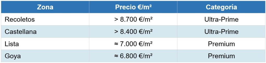 El Barrio de Salamanca se consolida como el distrito más exclusivo y seguro para la inversión inmobiliaria en Madrid. Con un precio medio de 10.000 €/m² y zonas ultra-prime que superan los 11.000 €/m², representa la zona más cara de la capital española.